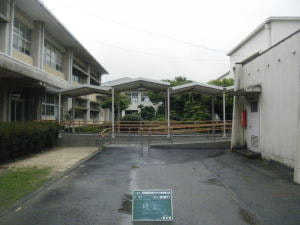 渡り廊下と屋外トイを接続し、雨にぬれず利用できるようになりました。