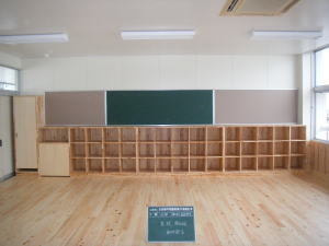 中学部創設にあたり、高校普通教室及び学習室を中学部普通教室に改修しました。 木をふんだんに使用して、明るい雰囲気の教室になりました。